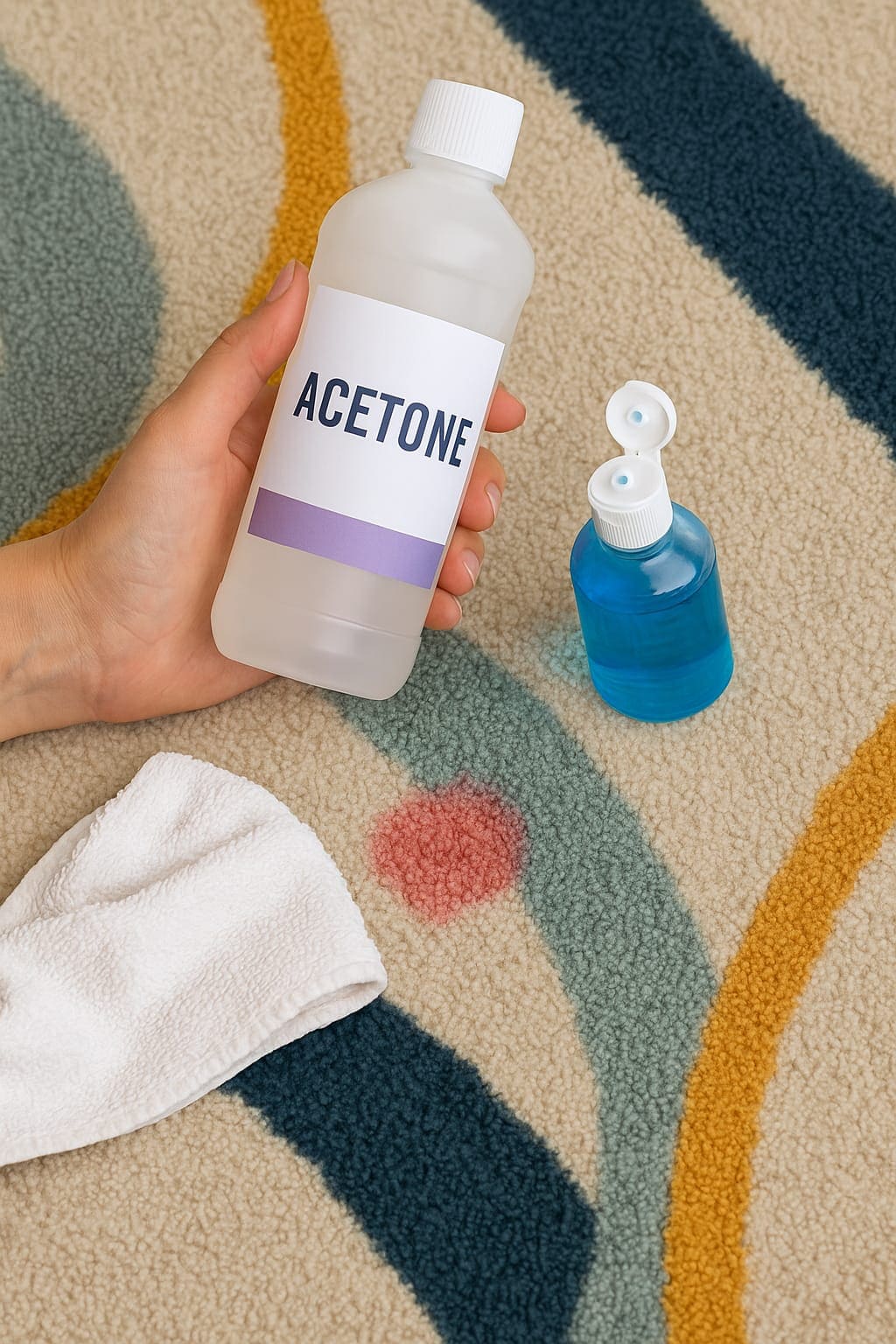 Uyarı: Aseton renkli halılarda renk atmasına neden olabilir; önce test edin.
