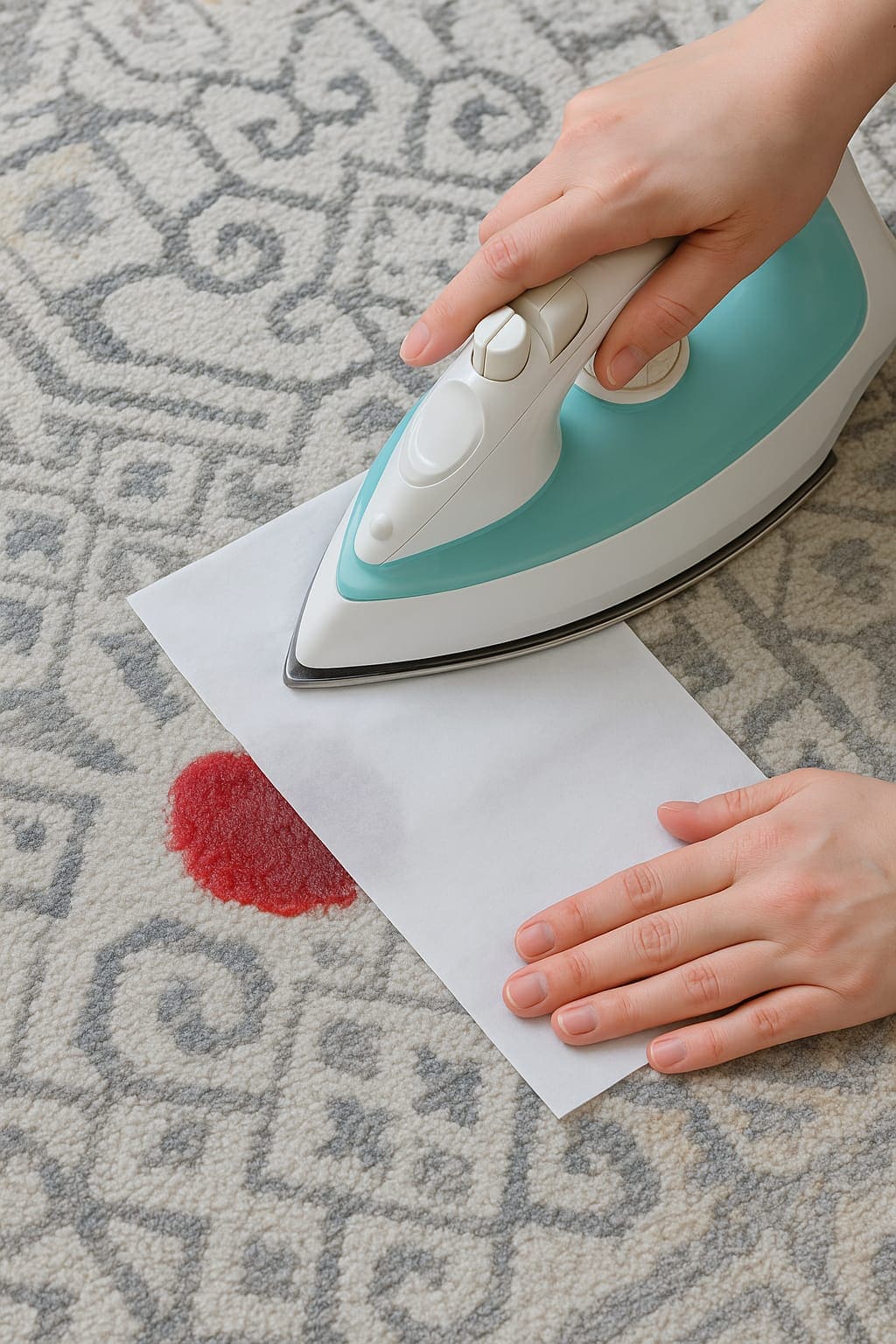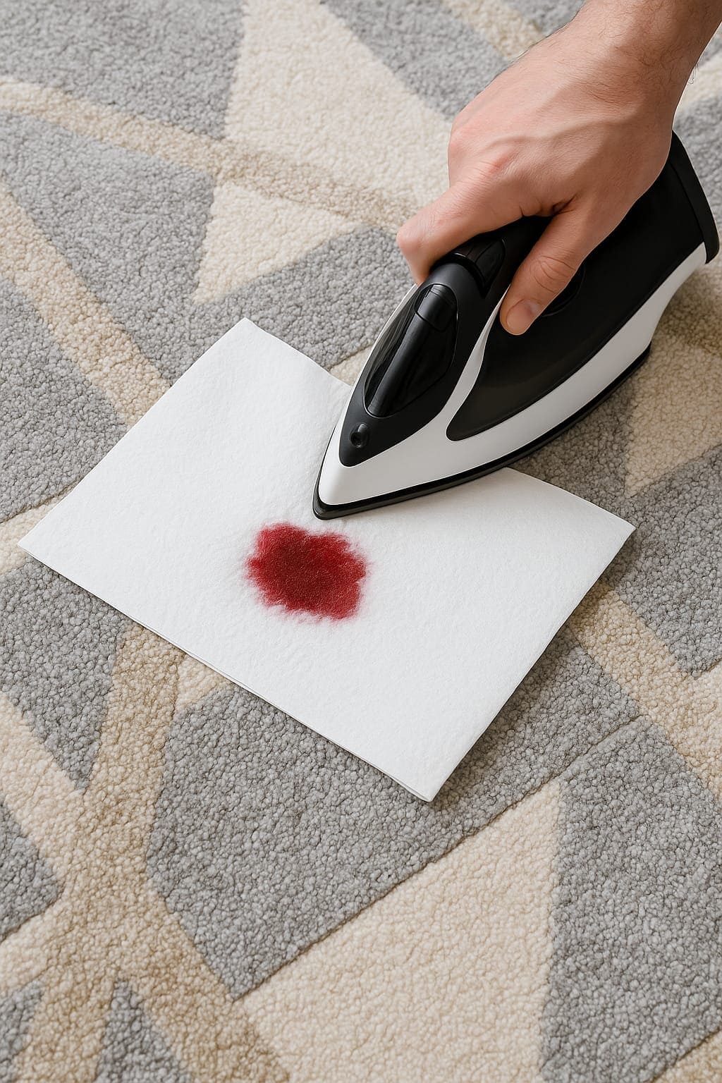 - Sıcak su kullanmak: Balmumunu eritir ve lekeyi derinleştirir.